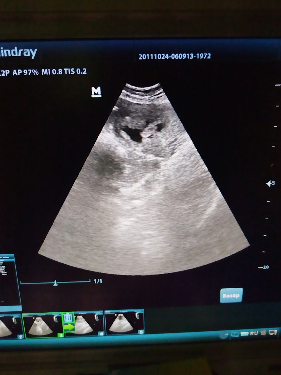 Владельцы собаки по кличке Гоша, возраст 9 лет, обратились в участковую ветеринарную лечебницу ОГУ «Саратовская межрайСББЖ» с жалобами на апатию, задержку мочеиспускания у своего питомца. Во время ультразвуковой диагностики ветеринарные специалисты обнаружили у животного отслойку стенки мочевого пузыря. Было назначено симптоматическое лечение (антибиотикотерапия, спазмалитики, кровоостанавливающие и обезболивающие препараты) и плановое УЗИ в динамике через 10-14 дней после проведенного лечения.