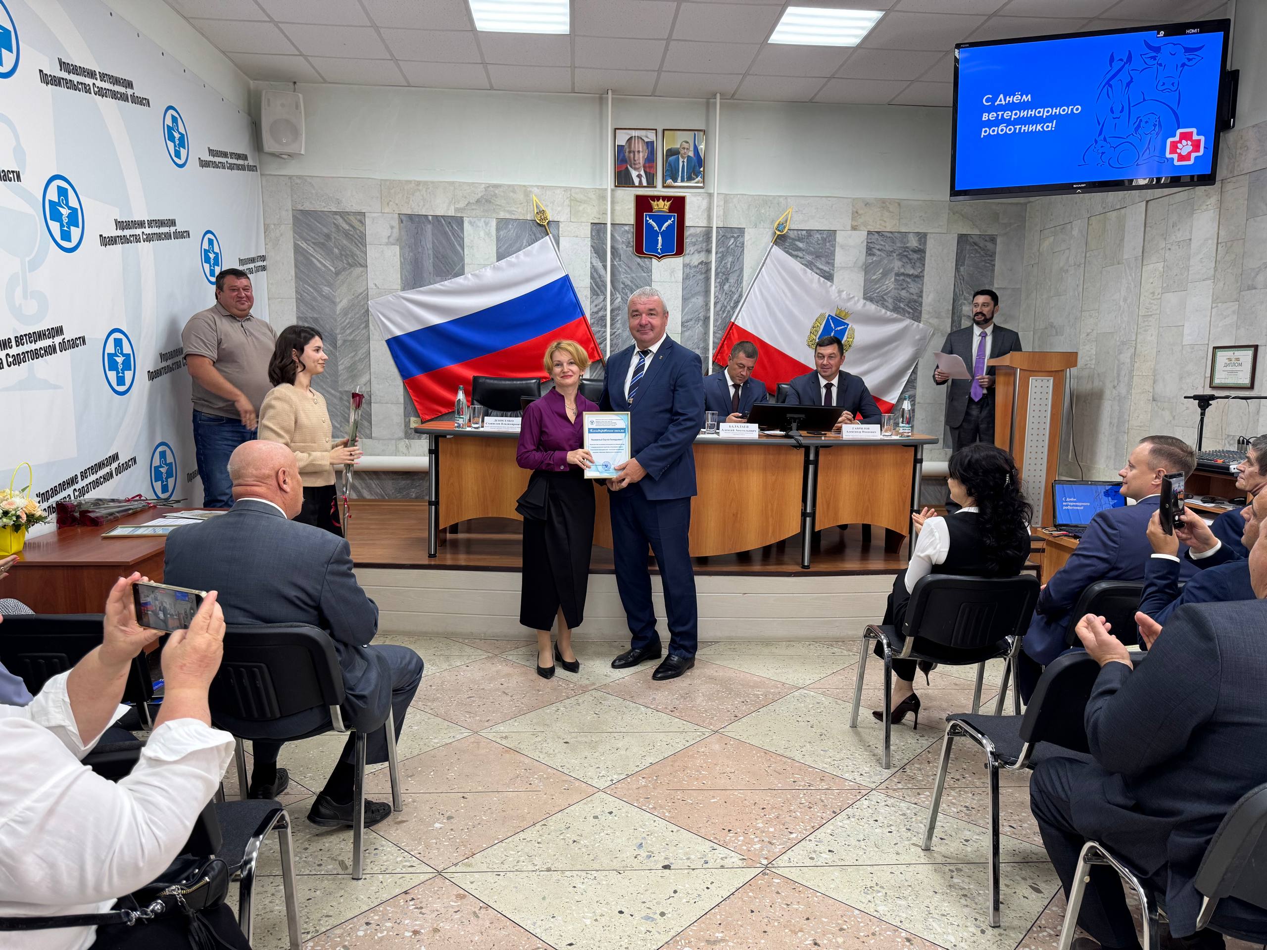 В преддверии профессионального праздника Дня ветеринарного работника России в управлении ветеринарии Правительства Саратовской области состоялось торжественное вручение ключей от нового служебного автомобиля ОГУ «Саратовская межрайСББЖ». Заместитель Председателя Правительства Саратовской области - министр сельского хозяйства области Роман Станиславович Ковальский лично передал в руки начальника станции Борисова Сергея Геннадьевича ключи от нового автомобиля «Лада Гранта».