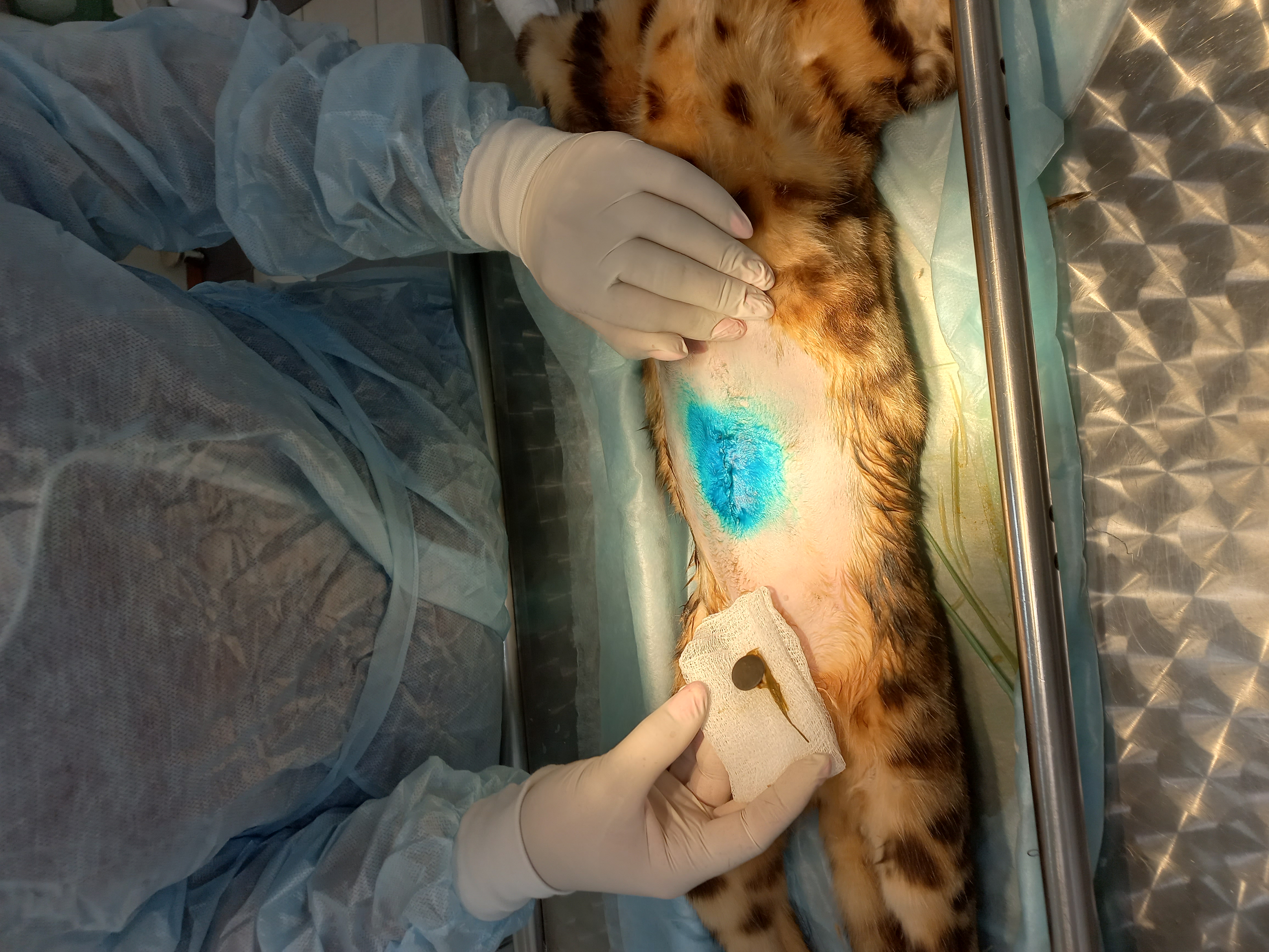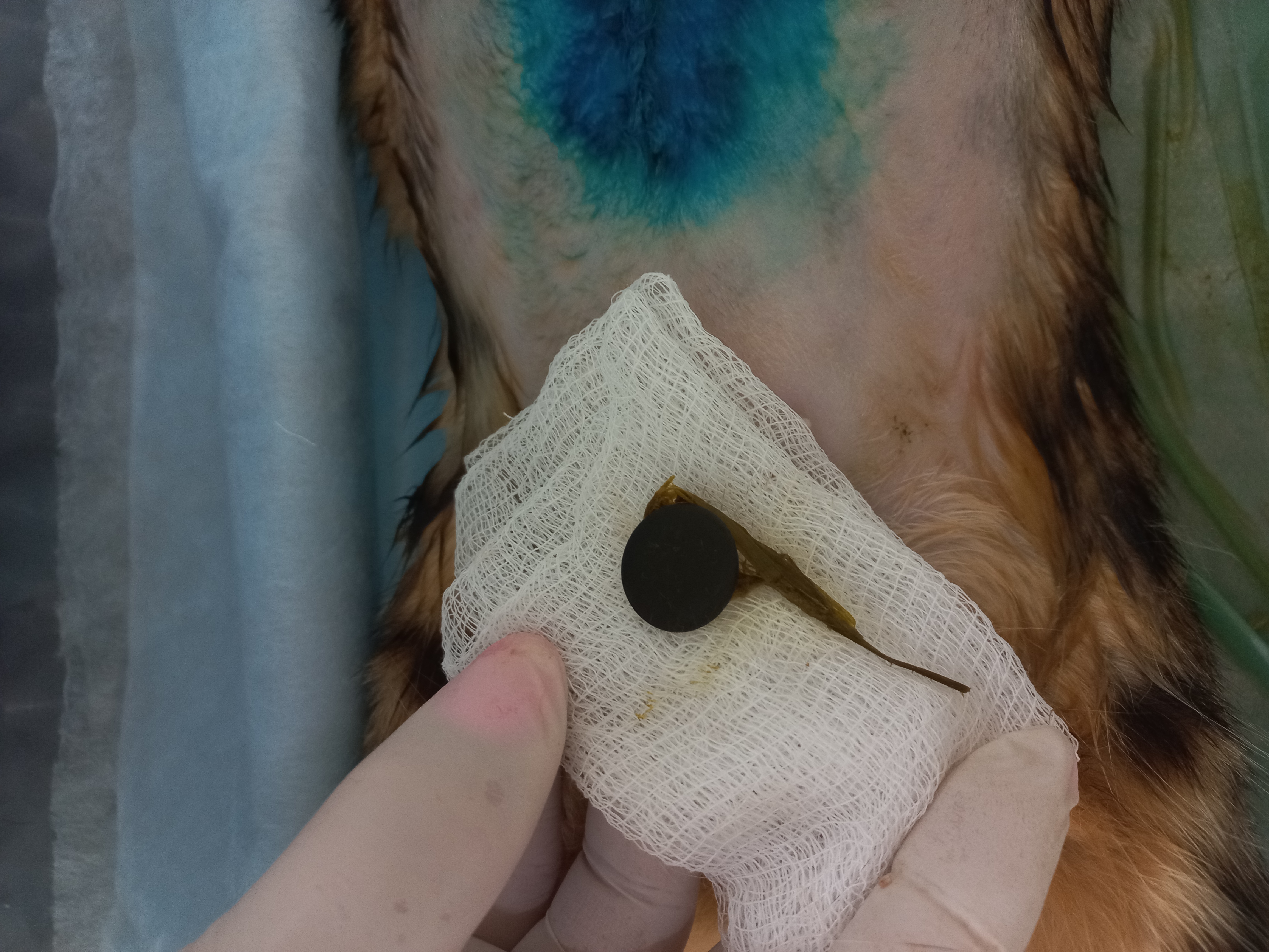 Назначена симптоматическая терапия и внутривенные инфузии. Кошке не становилось лучше в течении 2х дней. При повторном проведении УЗИ выявили признаки инородного тела в тонком отделе кишечника. Проведена энтеротомия с последующим удалением инородного тела. Назначена голодная диета, внутривенные инфузии, антибиотикотерапия.